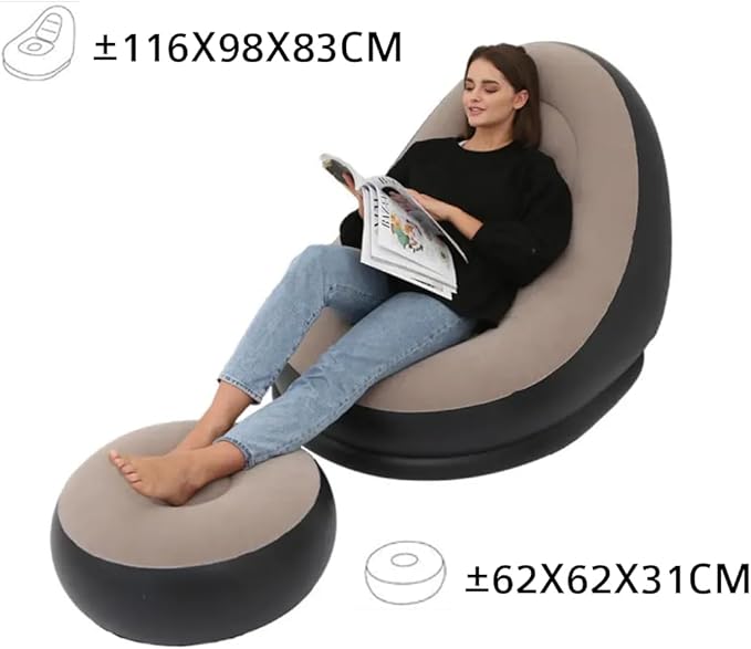 لا تخف من أن تكون مخطئًا :يمكن تفريغ الهواء من الأريكة والمقعد بسرعة باستخدام مضخة هواء قياسية (غير متضمنة)، مما يجعل الإعداد والتخزين سهلاً.